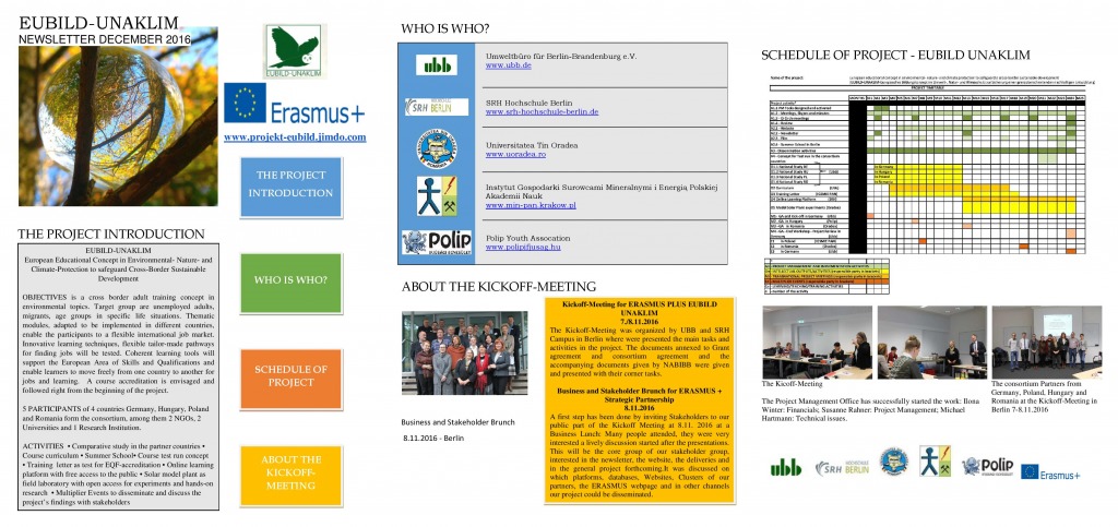 - Az együttműködésben 5 partner vesz részt 4 országból (Németország, Magyarország, Lengyelország, Románia), közülük egy állami és egy magánegyetem, két civil szervezet és egy állami kutatási intézet, melyek szeretnének kialakítani egy európai oktatási/képzési tervet az alábbi tartalmakkal: